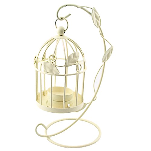 -. Title : AerWo Round Bird Cage Votive Candle Holder Hanging Lantern Candlestick Home Centerpieces White