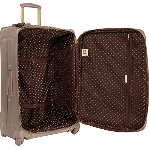 -. Binding : Apparel -. Brand : Anne Klein -. Department : unisex-adult -. Feature : Durable 800x800 polyester body fabric / Four wheel spinner system for easy 360 degree rolling / Telescoping trolley handles are recessed and feature a push-button locking mechanism / Suitcases expand for added packing capacity and feature exterior pockets, top and side carry handles / Interior of suitcases are fully lined in a polka dot pattern featuring large interior mesh pocket and adjustable valet straps -. Label : Randa lage -. Manufacturer : Randa lage -. NumberOfItems : 1 -. PackageQuantity : 1 -. ProductGroup : Apparel -. ProductTypeName : LAGE -. Publisher : Randa lage -. Studio : Randa lage -. Title : Anne Klein Madrid 28 Inch Expandable Spinner