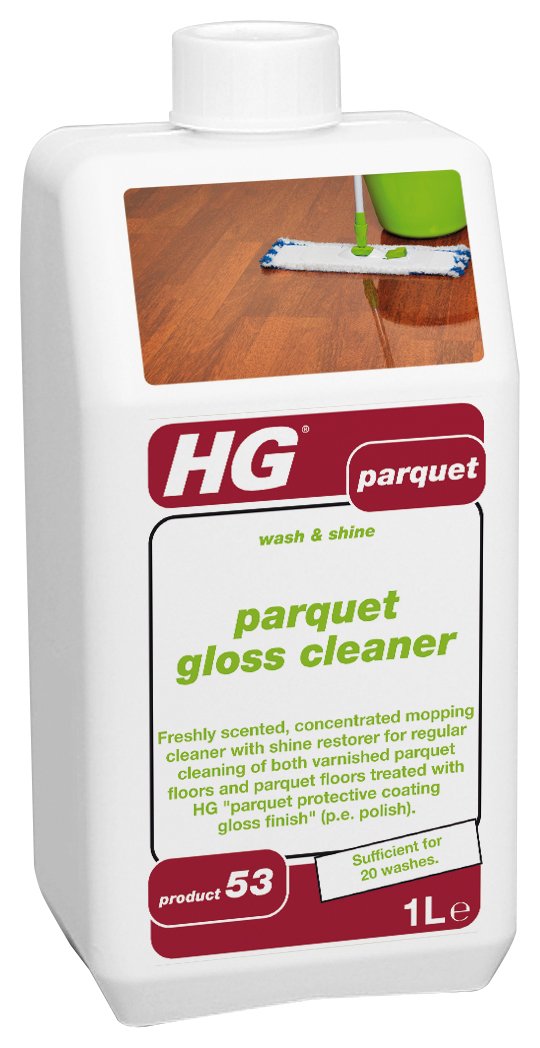 HG parquet gloss cleaner (wash & shine) (HG product 53) is a freshly scented, concentrated mopping cleaner with shine restorer developed specially for regular cleaning of both varnished parquet floors and parquet floors treated with HG parquet gloss finish protective coating (p.e. polish) (HG product 51).