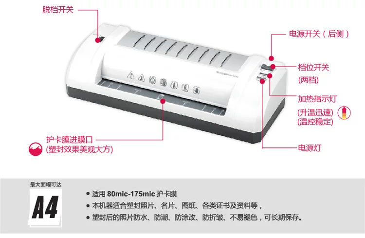 The machine is suitable for plastic photos, business cards, drawings, various certificates and information, etc.