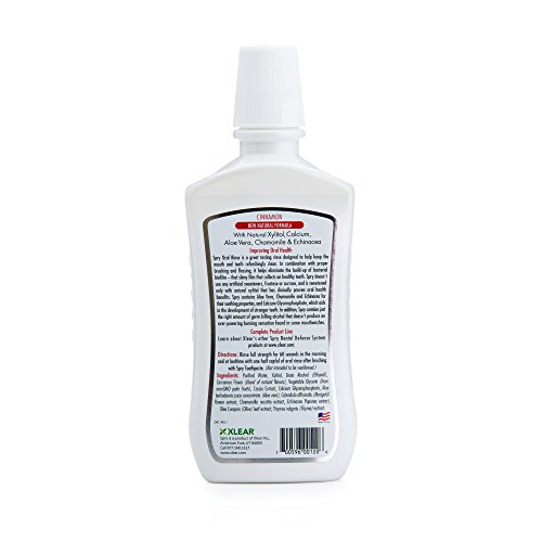 -. Binding : Misc. -. Brand : Spry -. Feature : Natural Cinnamon flavor is for those who like to end their oral care regime with a little spice. / Sweetened with 100% xylitol to more effectively clean teeth and hydrate dry tissues. / Low alcohol content means you won't be killing the beneficial bacteria that also live in your mouth. / Pure plant extracts like Aloe Vera and Echinacea help soothe irritated oral tissues. / Non-GMO ingredients so you can feel good about your oral care routine. -. IsAdultProduct : 0 -. Label : Xlear -. Manufacturer : Xlear -. ProductGroup : Beauty -. ProductTypeName : BEAUTY -. Publisher : Xlear -. Studio : Xlear -. Title : Spry Xylitol Oral Rinse, Natural Cinnamon - 16 fl oz