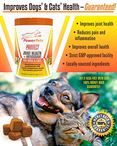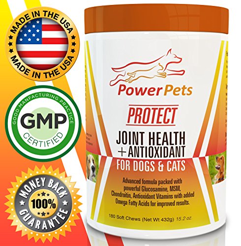 -. Feature : ◆HELP YOUR PET THRIVE◆ Help your pet maintain and regain their youthful vigor! Power Pets Protect has all the essential ingredients to support your pets healthy bones and joints, skin, fur, and nails - so your pet can thrive again! / ◆COMPLETE ADVANCED FORMULA◆ The most advanced formula on the market. Other formulas are missing key ingredients or use low-quality ingredients. Only Power Pets Protect contains ALL the essentials - MSM and Glucosamine PLUS Antixoidant Vitamins C & E, Yucca Schidigera, AND Omega-3, Omega-6. All of these ingredients work together to enhance results. 100% safe and all-natural. / ◆SUPERIOR RESULTS◆ Let your pets thrive! Power Pets Protect is the most complete formula on the market. Not only does it improve joint health and flexibility, but it will also enhance and support your pets overall health, including skin, fur, nails, and teeth. No other formula delivers all these impressive benefits in a single product. / ◆GREAT TASTING SOFT CHEW◆ Can be given with food or as a special treat! Pills and liquids are messy, spill easily, or are difficult to use and get your pets to consume. Our soft chew is easy to administer and tastes great - pets love it! / ◆100% SATISFACTION GUARANTEE◆ Our state-of-the-art production facility manufactures under strict FDA regulations for quality and safety. Rest assured you will receive the highest quality product available. We stand behind our commitment to you and your pets with a full money back guarantee if for any reason you are not satisfied.