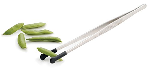 Studio : RSVP Publisher : RSVP Binding : Kitchen Product Description Cook and enjoy food with this pair of silicone tipped tweezers from the RSVP Endurance line. Made form stainless steel with silicone tips, these tweezers are durable and will not scratch non stick cookware. They are perfect for meat, fish, saute or stir-fry. The length of these tweezers will ensure your hand stays away from the heat while you cook or eat. These tweezers are also ideal for removing food from small jars. Best of all, they are dishwasher safe, making clean up a breeze. 12" L 0
