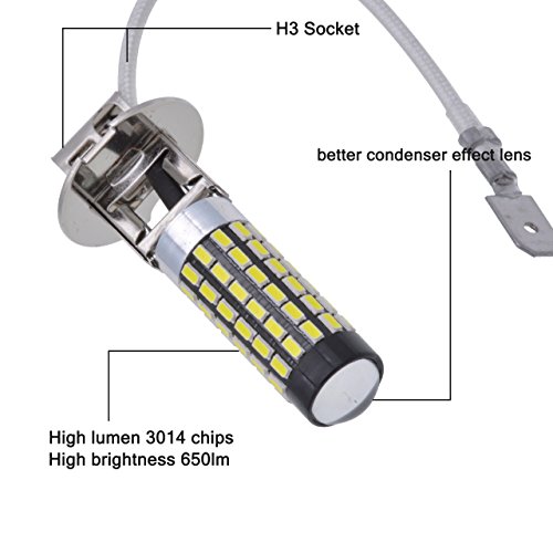 KaTur 2pcs 900 Lumens H3 Base Super Bright 3014 78SMD Lens LED Bulbs Car Driving Daytime Running Lights Xenon White 6000K DC 12V-24V