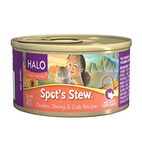 Halo's meat based diets use only WHOLE MEAT protein and say "NO" to meat meals of any kind in our wet cat food recipes. Our highly digestible, grain-free wet cat food provides nutrition made with WHOLE meat and farm-raised vegetables, good for all life stages, whether your pet needs kitten food or senior cat food. Halo's natural canned cat food is made of the finest quality ingredients for a happy pet - inside and out. Bundle includes 3 flavors: Salmon, Chicken & Shrimp, and Chicken & Beef. 12 cans total, 4 of each flavor, 3 oz. each.