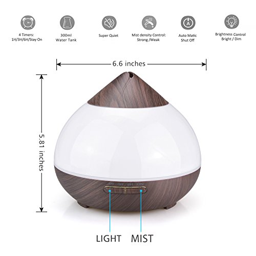 Studio : HAIOOU Publisher : HAIOOU Binding : Kitchen Product Description Why Choose 300ml Aroma Diffuser? HAIOOU 300ml essential oil diffuser is made with the concept of aesthetic, practicability and using friendly design. Comparing to other capacitiy diffusers, it has a 300ml water tank which is of the proper size in volume. If too small, the mist might not last longer. If too large, it will waste much of your precious essential oils. For this, just add 2-3 drops of your favorite essential oils such as lavender, hibiscus, rosemary, lemonlade, lotus and more, and with 7 color soothing light changing, it would create very lovely fragrance to full your space and pleasant atmosphere to suit your mood based on which oil you used. Lavender for relieving nerves and curing insomnia; Lemonlade for beautifying your skin; Lotus for strengthening memory... It's ideal as the present or birthday gift for your family, friends and beloved!
