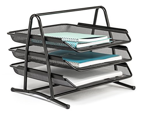 -. Feature : ENOUGH SPACE FOR EVERYTHING. 3 tier pull out trays of well-thought out dimensions that will keep the stuff you need at hand, while staying out of your way. / EASY ACCESS THAT MOVES WITH YOU. Our desk organizer's front-loading pull out trays slides out smoothly and goes right back easily for easy storage that's right there when you need it. / THE LIGHTWEIGHT HEAVYWEIGHT. Made of sturdy, mesh metal and a solid metal base, this one'll take all the papers you can throw at it, while being none the worse for wear. / LOOKS GREAT ON YOUR DESK. A smooth ABS coating feels great to the touch, while the smooth, rounded edges and trim add to the visual appeal. Four soft rubber grips protect your desk / USE RIGHT OUT OF THE BOX. Easy 3 minute assembly comes with a free double head screwdriver and step by step instructions manual. Dimensions: 13.5" L x 11..75" W x 10.75 H - Register your product for a Lifetime Warranty