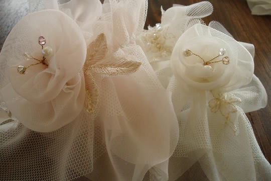 アイボリー:オーガンジー ピンク:ジョーゼット *それぞれに、ソフトなチュールもMIXしております。 |
