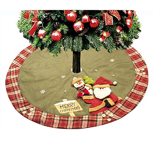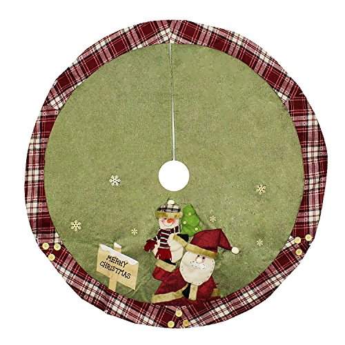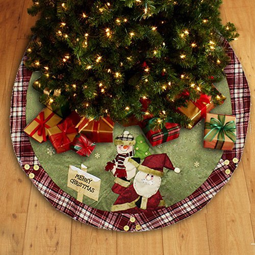 Chic Gift Large Snowman Christmas Tree Skirt with Plaid Trim, 48"
