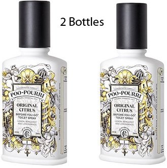 Stop embarrassing odor before you go. This bathroom freshener's natural essential oils create a film on the surface of the water, trapping odor at it's source. A citrus fresh blend of Lemon-grass, Bergamot, Grapefruit and other natural oils that leave the bathroom smelling clean and fresh. These two 8 oz. bottles are the perfect size for your busiest bathroom at the home OR office. Up to 400 uses per bottle. All-natural, non-toxic, biodegradable. Never tested on animals. Made in the USA.Feature