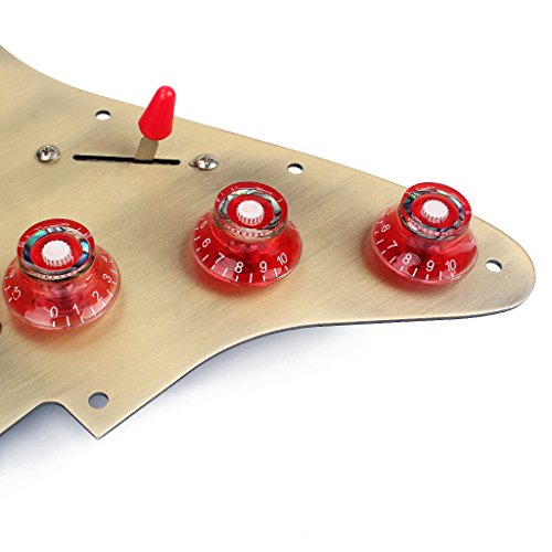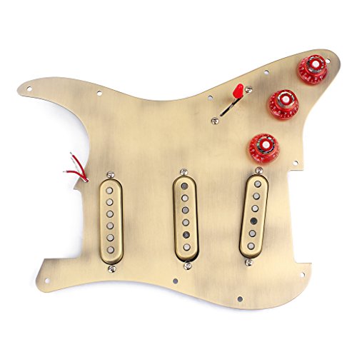 Description: 100% brand new and high quality 3-single coil pickups with magnets, 1-ply 11 screw holes in the side 1 volume and 2 tone control knobs Fit for Fender Stratocaster electric guitar Color: Bronze Material: Aluminium alloy, copper, alnico