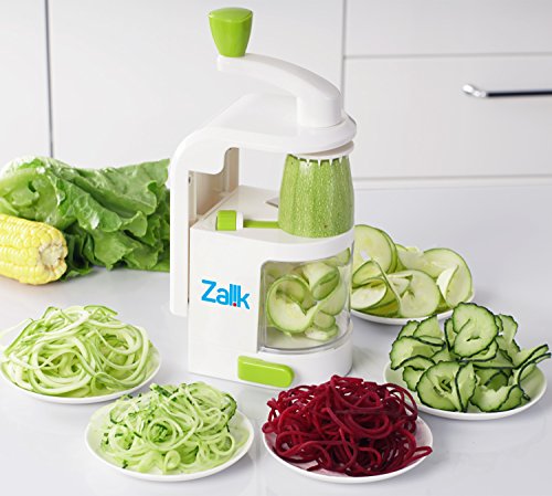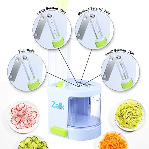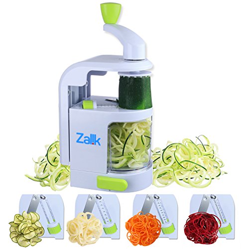 Zalik Spiralizer 4 IN 1 Blade Dial - Small Professional Vegetable Slicer With Powerful Suction Base - Heavy Duty Veggie Pasta Spaghetti Maker For Low Carb/Paleo/Gluten-Free Meals