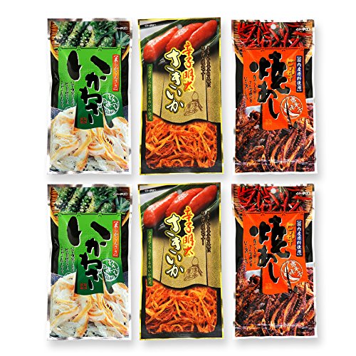 -. Binding : Misc. -. Brand : Ninjapo -. EAN : 4562417999798 -. Feature : "Otsumami" is a Japanese snack food enjoyed together with alcohol. / Popular Otsumami is made of dried seafood (squid etc.). / Assorted 6 packs set of Otsumami such as spicy squid. / Allergens: squid, soybeans, milk / Only "Nippon Tomodachi" sell original "Ninjapo" Noshigami wrapped set. Noshigami is ceremonial wrapping paper attached to gift in Japan. -. ProductGroup : Grocery -. ProductTypeName : GROCERY -. Title : Assorted 6 Packs of Otsumami (Japanese Dried Seafood Snack eaten with Sake) Set F (Spicy Squid, etc.) Ninjapo Wrapping