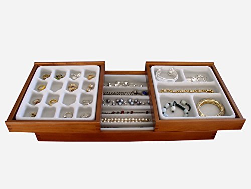 Customize using multiple organizers by Axis; stackable, sliding design. Different sizes and compartment boxes available and can all be used together in any configuration. The exclusive Slide ‘em feature allows you to slide the trays to the left or right and see all of your jewelry at the same time.