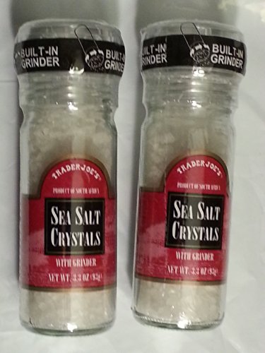 Trader Joe's Sea Salt Crystals with Built-in Grinder 3.3 Ounce 2 Bottles