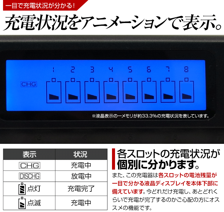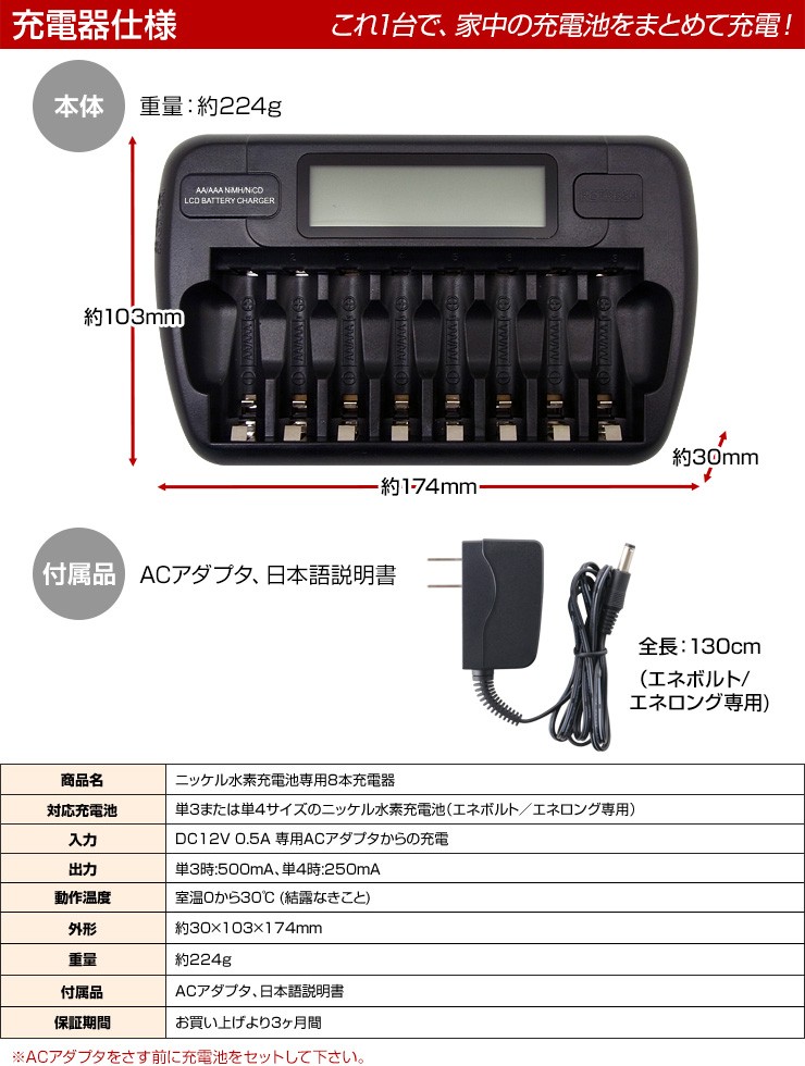 | 商品名 | ニッケル水素充電池専用8本充電器 |