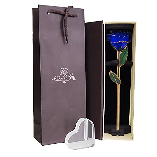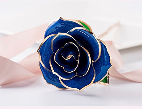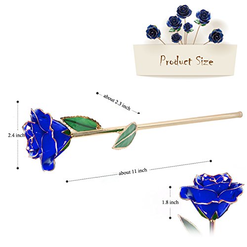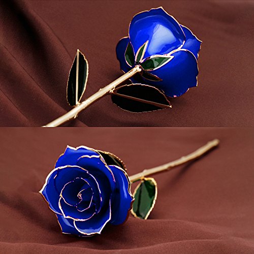 OFFIDIX 24K Gold Rose with display stand Love Forever Long Stem Dipped 24k Gold Rose in Gift box, Best Gift for Valentine's Day, Mother's Day, Anniversary, Birthday Gift,Festivial Gift (Blue)