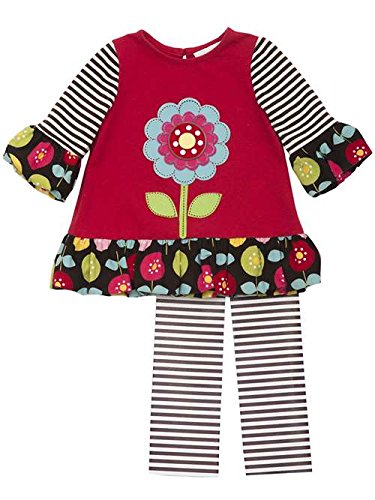 -. Title : Rare Editions Red Black Multi Flower Stripe Outfit Baby Girl 12M-4T