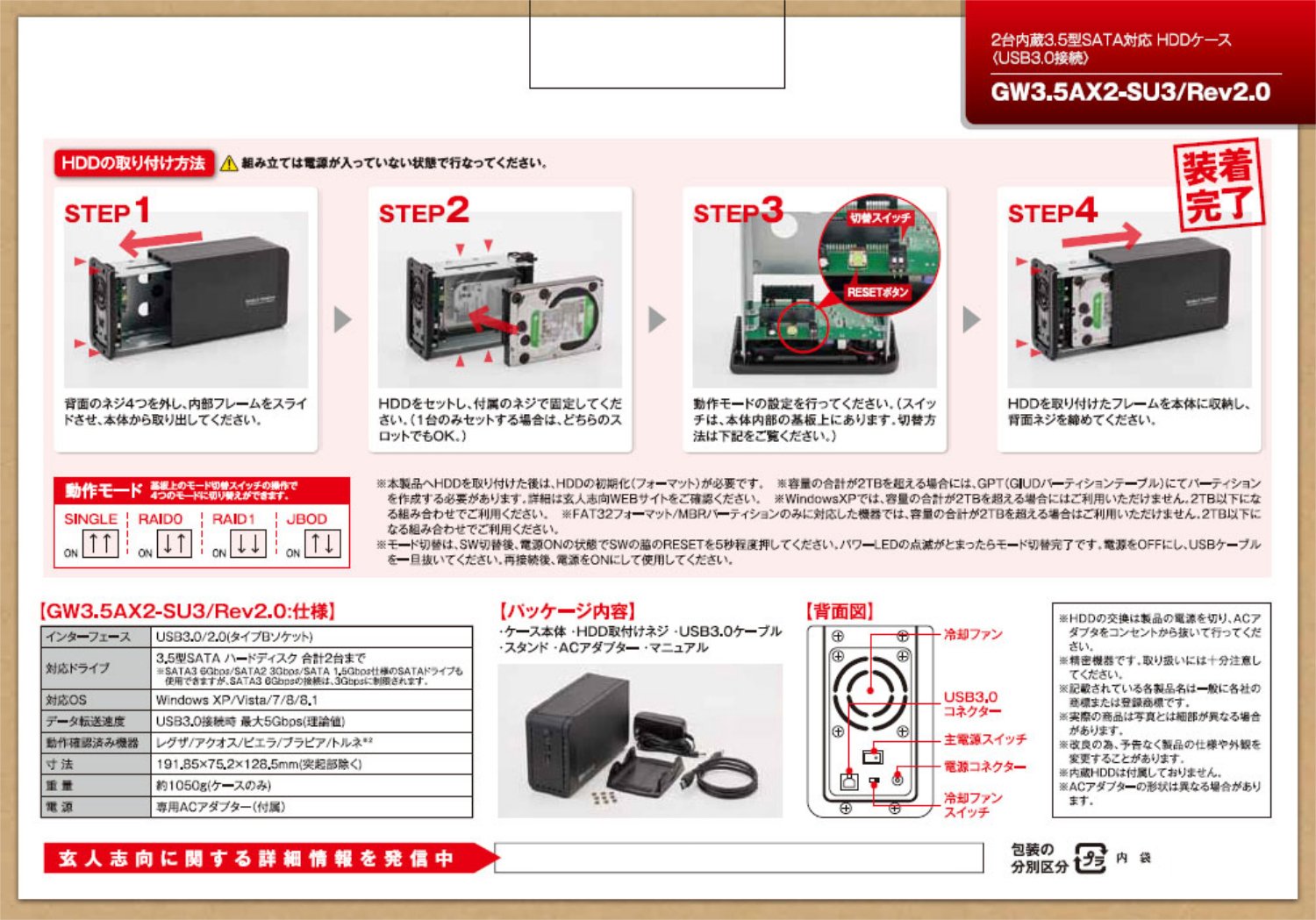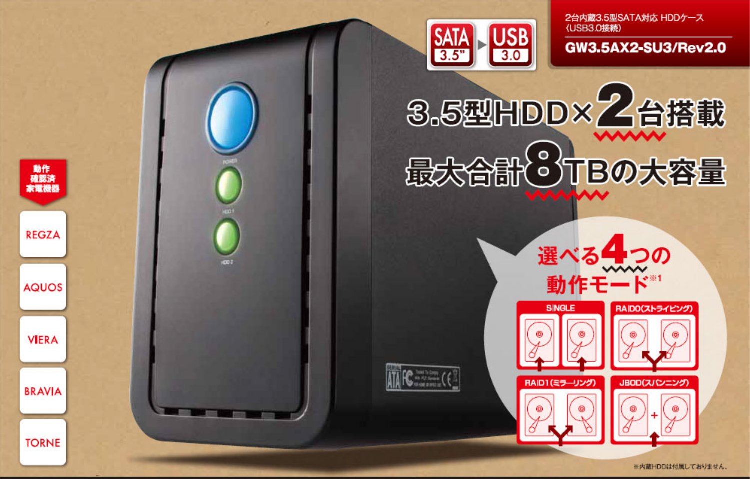 Professional-oriented HDD case 3.5 inches HDD2 units can be equipped with USB3.0 / 2.0 GW3.5AX2-SU3 / REV2.0