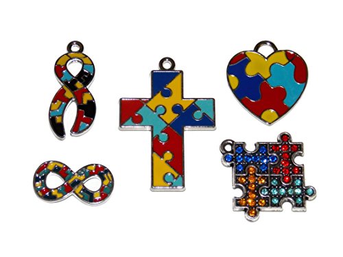 Autism Awareness Puzzle Piece Jewelry Making Craft Charms Cross, Ribbon, Heart, Infinity and Puzzle Cube
