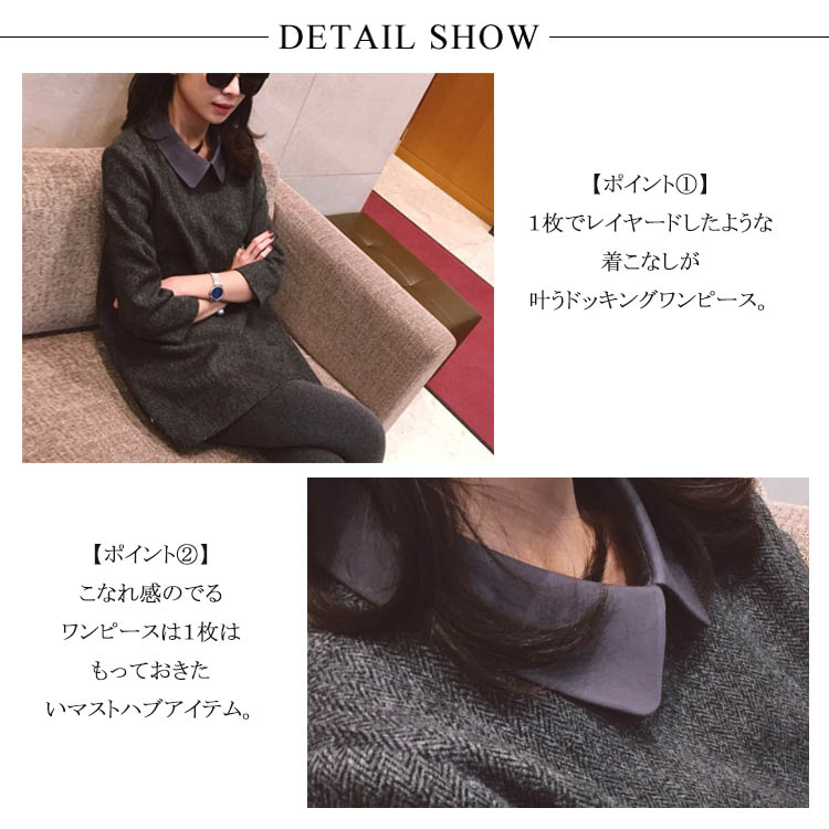 | 最旬スタイリングへ導くドッキングワンピ♪上品な印象で着こなせる襟付きデザインが◎シャツ風なので、小顔効果も期待できます。1枚でサマになるので、ちょっとしたお出かけやデートにも。 | |