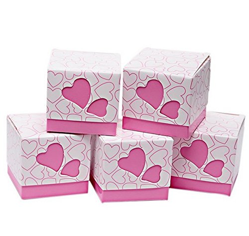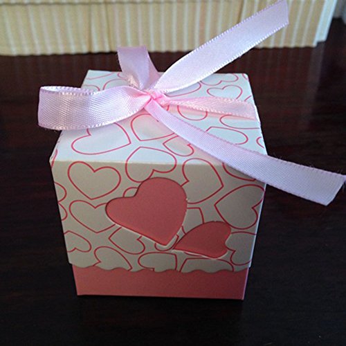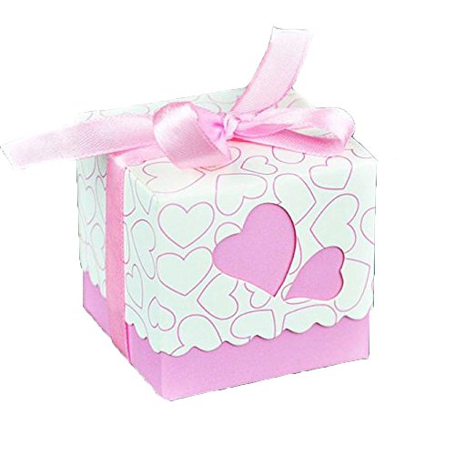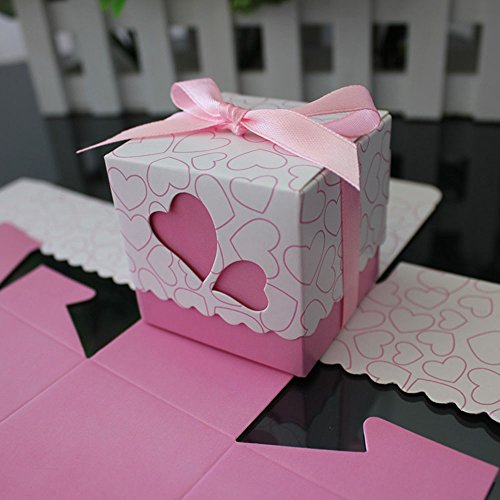 UGE 50pcs DIY Hollow Out Love Heart Pattern Wedding Party Birthday Party Decorative Boxes Candy Gift Boxes with Ribbon (Pink)
