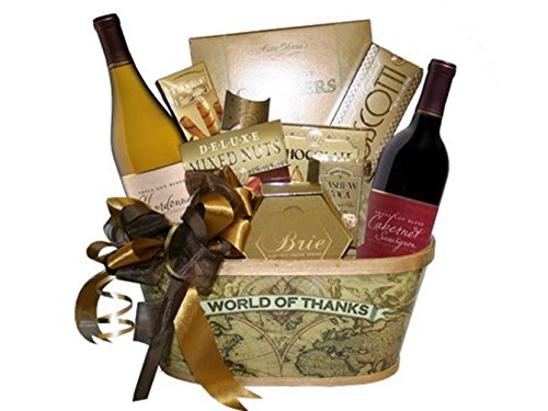 Gift Basket Container Old World Design Splitwood Wooden Oval "A World of Thanks" Banner on Map Background. Use as Giftbasket Box for Gifts (Container Only)