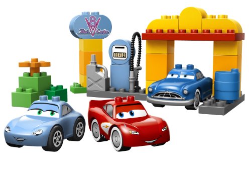 -. Feature : Includes 3 cars: Lightning McQueen in his special Radiator SP.R.Ings paint job with whitewall tyres, Sally, the Porsche, and Doc Hudson, also known as the Fabulous Hudson Hornet / Flo's V- Cafe sign, gas pump and lots of DUPLO bricks set the scene for one of the movie's best known locations / Colorful, sturdy set / Great for young builders / 32 pieces