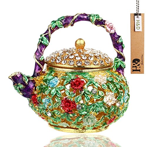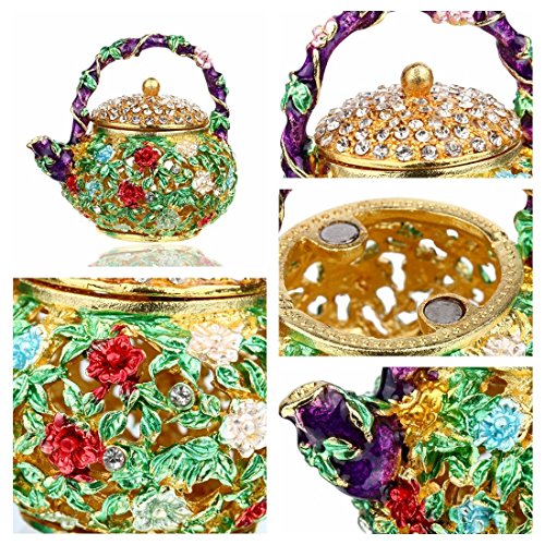 YUFENG Mini Teapot Trinket Box Hinged For Girls Ring Holder Handmade Ring Holder Dish Decorated (teapot)