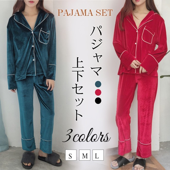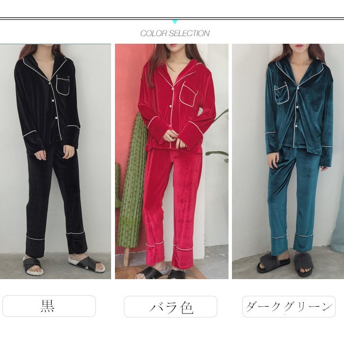 ご注意:こちらの商品はお客様がご入金後、メーカーから取り寄せさせて発送する予定です。ご入金からお届けまで約5-7日ほど時間がかかります。予めご理解いただきました上でご注文下さいますようお願いいたします。★生産国:中国★素材:ベロア★生地の厚さ:普通★カラー:黒 バラ色 ダークグリーン(写真参考)※お客様ご使用のPC環境により商品画像のカラーが多少異なる場合があります。仕入時期により多少デザインなど異なる場合があります。ご了承ください。★サイズ(cm):S:バスト100 肩幅43 袖丈55 ウエスト58 ヒップ98 トップス丈66 パンツ丈96M:バスト104 肩幅44 袖丈56 ウエスト62 ヒップ102 トップス丈67 パンツ丈97L:バスト108 肩幅45 袖丈57 ウエスト66 ヒップ106 トップス丈68 パンツ丈98※サイズは人の手によって測っているため、1-3cmの誤差がある場合がございます。予めご了承下さいませ。