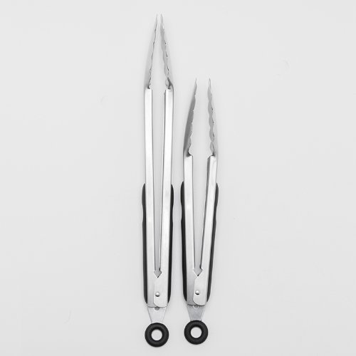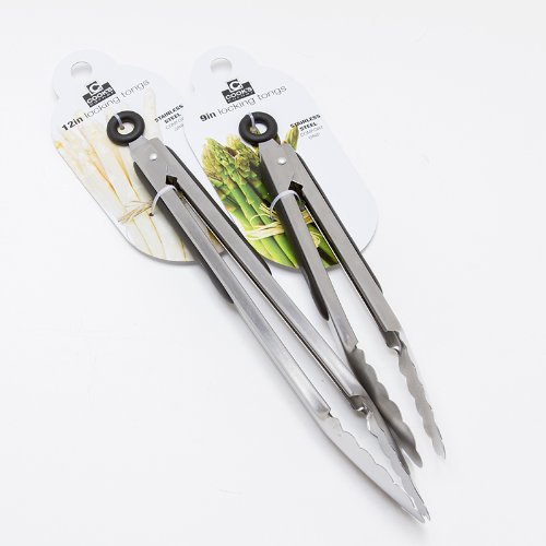 This versatile set comes with two different length tongs, so you'll have a well-equipped kitchen. 9" and 12" locking tongs with a soft handle for comfort. Great for serving, cooking, BBQing, flipping, grabbing, etc. Contemporary stainless steel look for a true chef's kitchen. (See other products from Value Housewares)