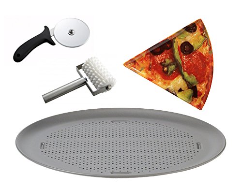 This professional pizza kit has everything you need to make the perfect pizzas for your family right at home. Kit includes a Calphalon 16-inch pizza pan, docker roller, pizza cutter and 6 plates for serving your delicious creations. Every component of this kit is professional grade and designed to last for years.