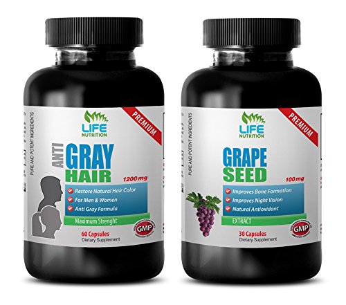 Studio : LIFE NUTRITION Publisher : LIFE NUTRITION Binding : Health and Beauty Product Description immune support dietary supplement - GREY HAIR - GRAPE SEED EXTRACT - zinc copper - (2 Bottles Combo) For blood flow and heart function: Our herbal supplementation with grape seed extract and gray hair blends may promote healthy blood flow and cardiovascular health. Vitamin C improves the body's absorption of iron, which helps in alleviating fatigue. This herb also contains a considerable amount of potassium, a mineral that reduces tension in your system and blood flow areas, boosting your heart function. Memory Benefits: Vitamin B6 may show its beneficial properties in improving cognitive function and promoting memory. Vitamin B-6 may promote better performance on memory tasks. As the memory function is linked to the levels of this essential vitamin b6, taking our herbal supplement on regular basis may show its benefits in improving memory function and learning process. Our herbal blends might be useful for cognitive function boost as well as mental clarity and focus. Benefits For Hair: Nettle leaves may be helpful for our hair too. Using stinging nettle is one of the oldest improvements for hair loss. Stinging nettle capsules and tea can be consumed to deal with hair loss internally and stop hair loss effectively. Not only does stinging nettle help in coping with hair loss, but it also helps in hair re-growth. Taking nettle extract supplementation daily may result in re-growth of lost hair and also helps in restoring the original hair color. Natural Antioxidant: Grape seed extract is considered to be one of the most effective natural skin support ingredients available. A natural byproduct of the equally popular wine industry, it provides a wide range of benefits to all skin types helping with reducing stress and increasing the suppleness of skin. 0