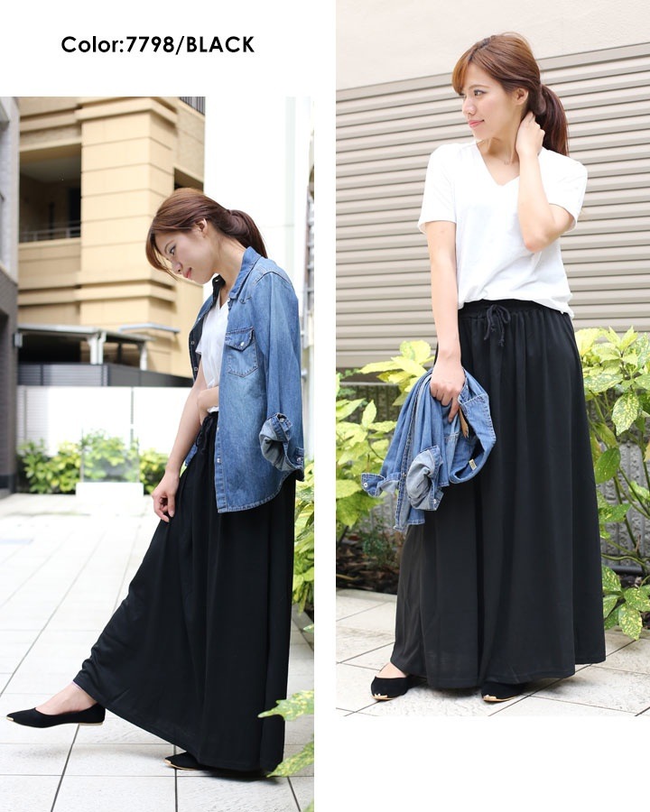 大人っぽくカジュアルからきれいめMODEまで幅広く着こなし可能なシンプルフレアマキシスカート。