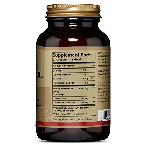 Studio : Solgar Publisher : Solgar Binding : Health and Beauty Product Description Evening primrose oil is one of the richest sources of the unsaturated fatty acid gamma-linolenic acid (GLA), which is important for women's nutrition. Premium quality primrose oil, cold pressed without the use of chemical solvents. Cold pressed source of GLA. Gluten, wheat and dairy free. 0