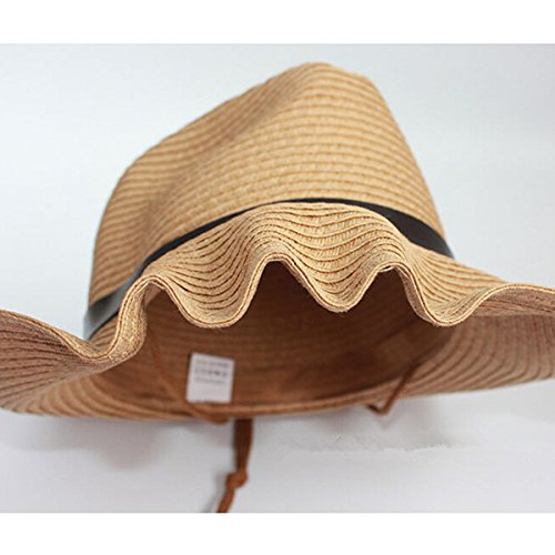 Package Including 1 * Cowboy Sun Hat Wide Brim Hat Summer Beach Straw Cap Foldable Caps (Beige) 0