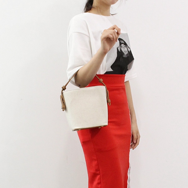 미니 사이즈의 버킷백 스타일로 가볍게 들기 좋은 여름 캔버스 데일리백! 캔버스와 고급 합성피혁이 믹스 매치되어 고급스러운 무드가 느껴지는 캔버스 가방이에요 흐물거리는 소재가 아니라 탄탄하게 모양이 잡혀있어 망가짐 걱정 없이 사용할 수 있어요 복조리 스타일이라 양쪽 끈을 잡아당겨 오픈클로징 하는 방식이에요 탈부착이 가능한 롱 스트랩으로 다양한 스타일로 연출이 가능하답니다 상세페이지 확인 후 굿초이스 해주세요! *모델 착용 컬러 - BROWN(브라운) / BLACK(블랙)         | COLOR | 브라운 / 베이지 / 브릭 / 코코아 / 블랙 | | 제품 색상은 모니터에 따라 실제 색상과 차이가 있을 수 있습니다. | | | | FABRIC | 면혼방+합성피혁 | | | | PRODUCTION | 제조국 / 중국 | | 품질보증기준 / 소비자분쟁 해결기준에 따름 | | A/S 책임자 및 고객센터 / 감성가방 | | | | SIZE INFO | 사이즈는 측정 방법에 따라 1~2cm의 차이가 있을 수 있습니다. | | 스트랩 길이는 연결 고리를 제외한 길이이며, 최대 길이입니다. | | (단위:cm, g) | | 가로 길이 | 세로 길이 | 너비 | 손잡이 높이 | 스트랩 길이 | 무게 | | 20 | 18 | 11.5 | 9 | 50(조절o) | 320 | |