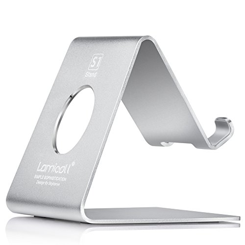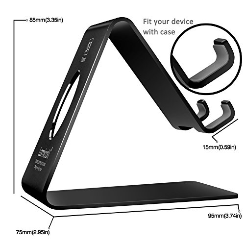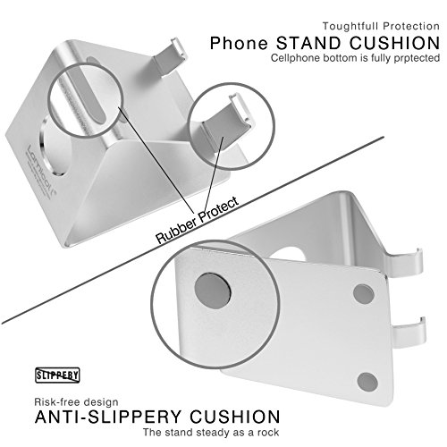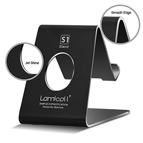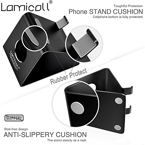 -. Feature : TALL ENOUGHT:Cell phone stand for desk is tall enough to fit your smart phones sync charging. Angle of phone dock Support your for Facetime,YouTube / FULLY PROTECT:The rubber pads and feet of desktop phone stand protect your device from scratches and sliding / COMPATIBLE :iPhone dock for desk is universal perfectly compatible with as majority of smartphones and tablets,such as iphone ipad mini,iPad,although with case / OUTSTANDING LOOKING:Super cool Black aluminum smartphone stand,with lightweight and the ipad stand is portable and edgy,it perfectly works with iphone and the android phone / EXCELLENT PACKING:1 x Lamicall cell phone holder for desk.The phone stand includes a 45 days money back &18-month warranty