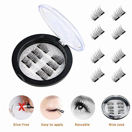 Magnetic False Eyelashes double magnet, No Glue 3D Reusable fashionable Fake lashes, Natural Handmade Extension Fake Eye Lashes, No Glue (0.2mm...