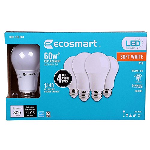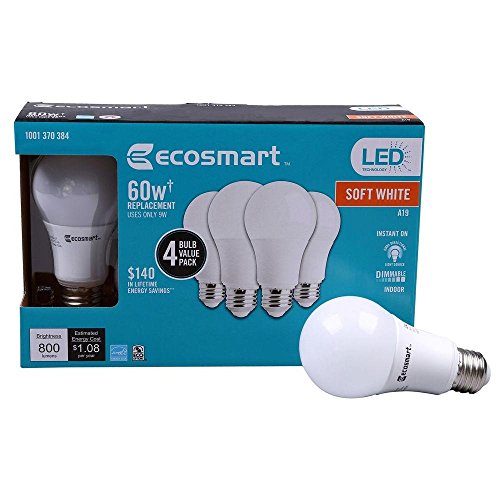EcoSmart 60W Equivalent Soft White A19 Energy Star + Dimmable LED Light Bulb (4-Pack)