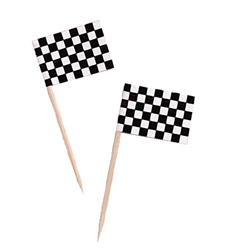 - Checkered flag on top of wooden toothpick; great for cupcake decorations and more