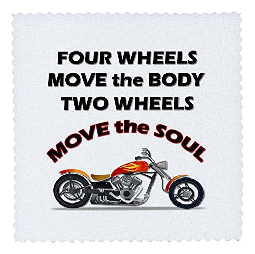 3dRose Four Wheels Move The Body, Two Wheels Move The Soul. - Quilt Square, 10 by 10-Inch (qs_220703_1)