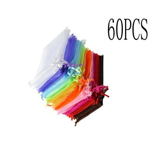 Elife 60pcs Drawstring Organza Jewelry Pouch Bags, 3.8x4.8 INCH (12 Mixed Color)