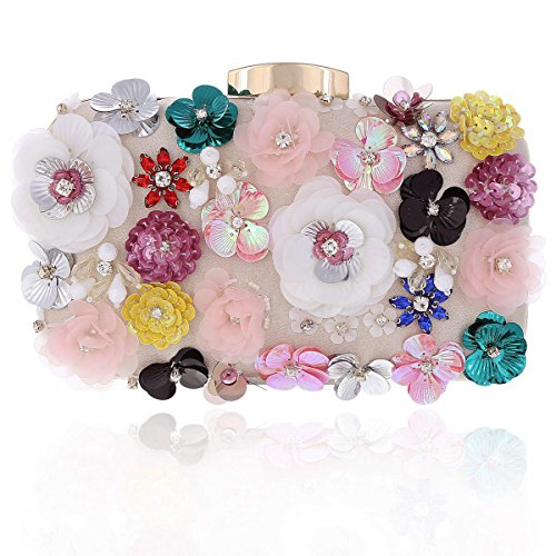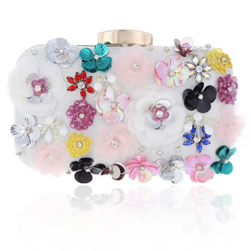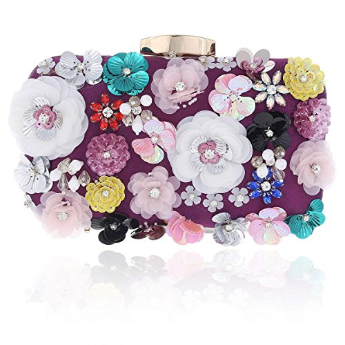 Product Description Every lady needed to own your beautiful clutch.This clutch bag is hardcase stylish, 3D flowers with sequins decorative front that will make you glow during your special occasion. Inside can easily fit a cell phone(iphone 6 plus can fit in), compact mirror, lip gloss, and other small things. Top metal clasp detail ,safty for you things.Conveniently, you can spend the night hands free with the detachable long chain that is included. There are 2 different size chain inside.Long chain size:118cm(46.45inch).short chain size:38cm(14.96in).Measurement is app 19x5x13cm(7.48x1.96x5.11inch). 0