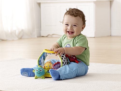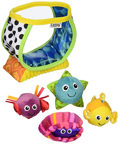 - Feature : Each sea creature makes a different sound - jingle crinkle rattle or squeak! / Easy to grasp creature make put in take out play fun / Easy self storage - fish store inside! / Bright, bold colors and patterns stimulate baby's vision. / Grow, discover, and learn through play! / Put them in, spill them out! Gripping and grabbing the different creatures develops hand-eye coordination / Multi-textured sea creatures invite baby to explore, stimulating tactile senses. / A crinkle crab, rattling starfish, squeaky oyster, and a jingling fish awaken auditory awareness. / Bright, bold colors and patterns stimulate baby's vision. / Grow, discover, and learn through play!