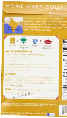 Sukhi's Gourmet Indian Foods Gluten-Free Classic Indian Curry Sauce, 3-Ounce Packets (Pack of 6)