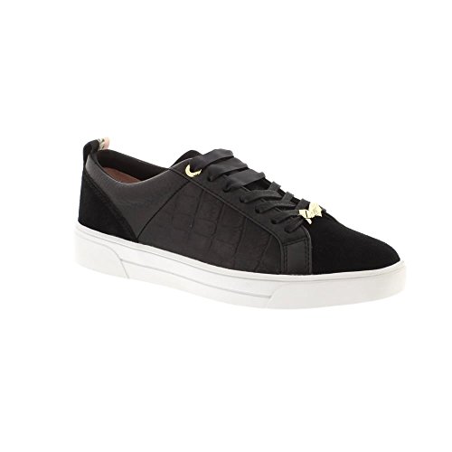 Studio : Ted Baker Publisher : Ted Baker Binding : Apparel Product Description The Kulei sneakers will make the perfect addition to your weekend wardrobe, thanks to their sporty design with feminine accents that offers great wearability. The shoes feature leather uppers with a reptile effect finish, as well as contrasting suede sections to the heel and toe. The ribbon laces, gold hardware and floral lining add femininine detailing, while the rubber sole gives an athletic inspired feel. 0