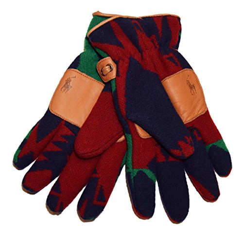 (RALPH LAUREN)/Accessories/Gloves/DIRECT FROM USA/Polo Ralph Lauren Men Indian Southwestern Wool Leather Gloves Navy Green Red S/M