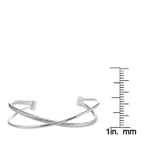 Sterling Silver Polished & Twist Criss Cross Cuff Bangle Bracelet