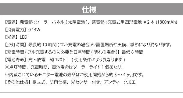 | 仕様 | 組立式 防雨仕様 光センサー付き アンティーク加工 |